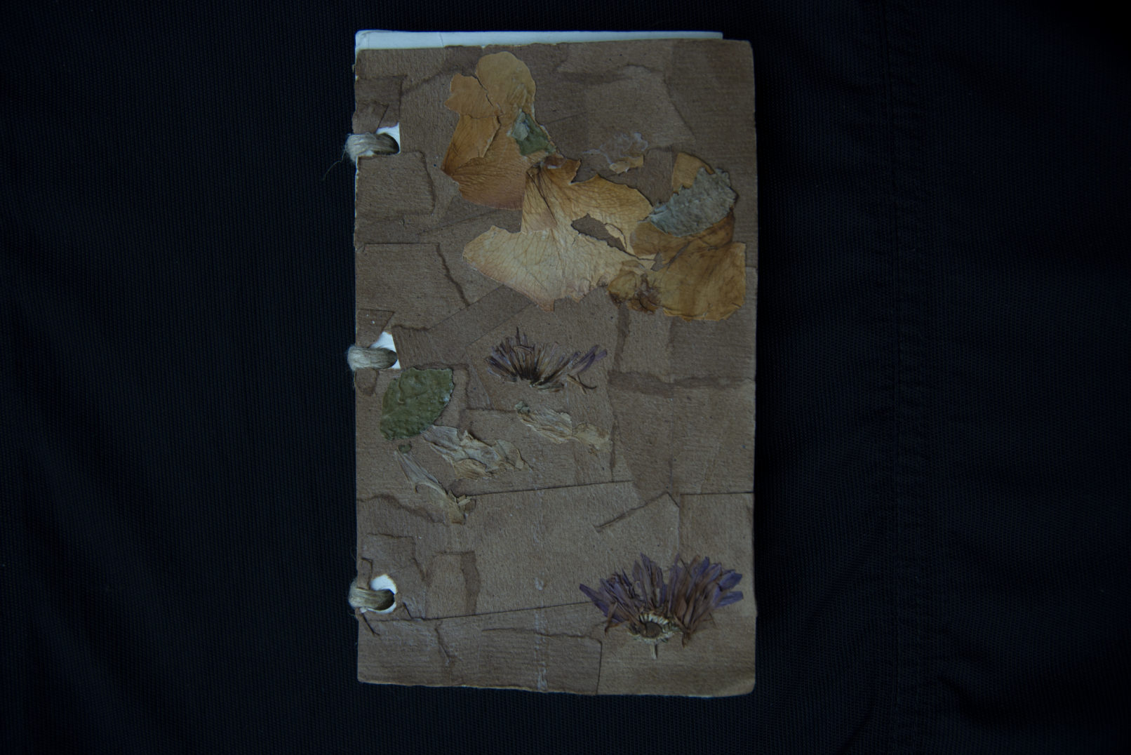 Kraft paper, dried flowers, twine, and watercolor paper