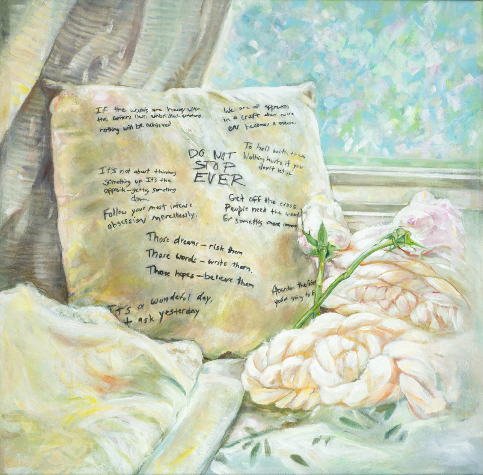 The painting is dedicated to a young, talented, sensitive writer with whom I feel an artist connection—despite not having been so close to him when he was alive.